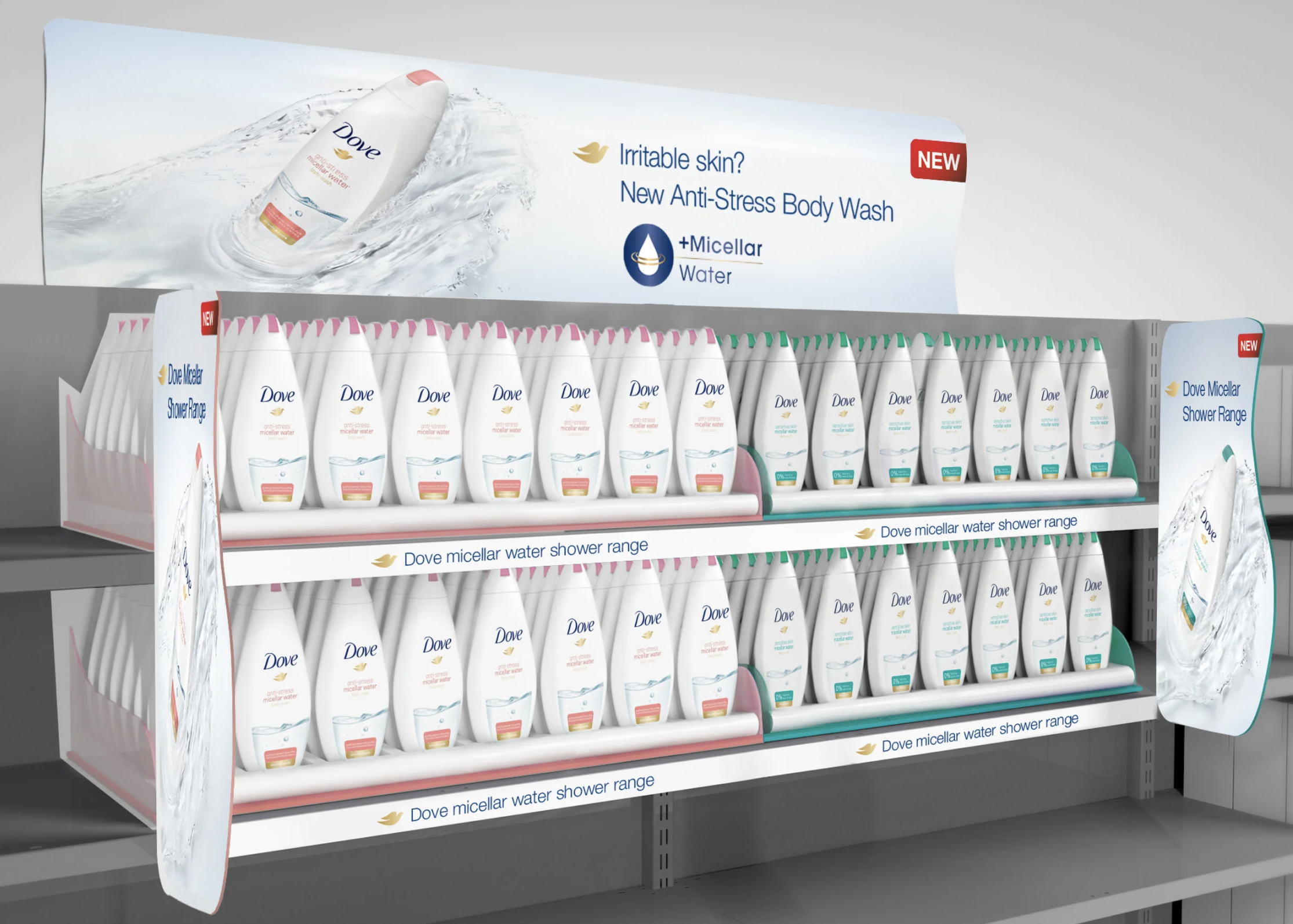 Dove launched micellar-water technology. A gentle, protective formula for sensitive skin. Defends against environmental stressors.